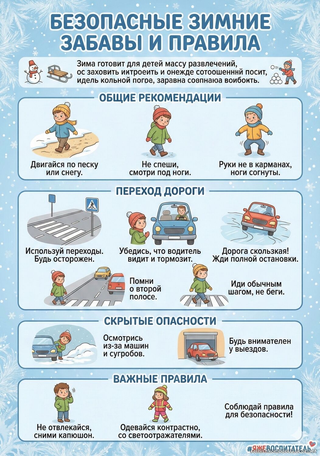 Памятки по соблюдению правил дорожного движения в зимнее время