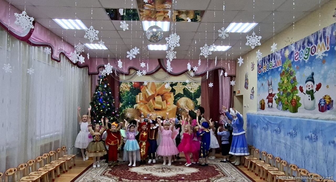 Воспитанники старшей группы «Звездочки» открыли праздничную неделю новогодних утренников музыкально-театрализованным представлением «Заколдованный Дед Мороз». Возле ёлки ожидали всех сегодня чудеса. Слышите? Здесь оживают добрых сказок голоса! Хрустальные льдинки, как в сказочном сне