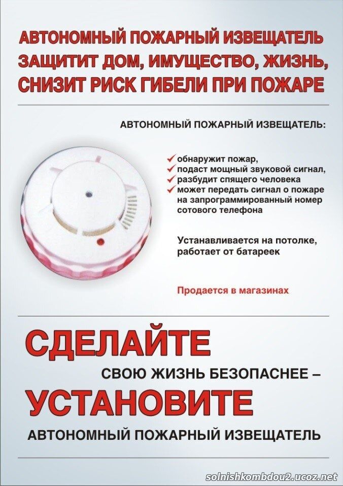 Автономный пожарный извещатель является наиболее эффективным средством по предупреждению гибели людей на пожарах. Это устройство реагирует на дым еще на стадии возгорания, когда потушить огонь можно подручными средствами. Например: накрыв плотным покрывалом, вылив стакан воды или засыпав землей из цветочного горшка.